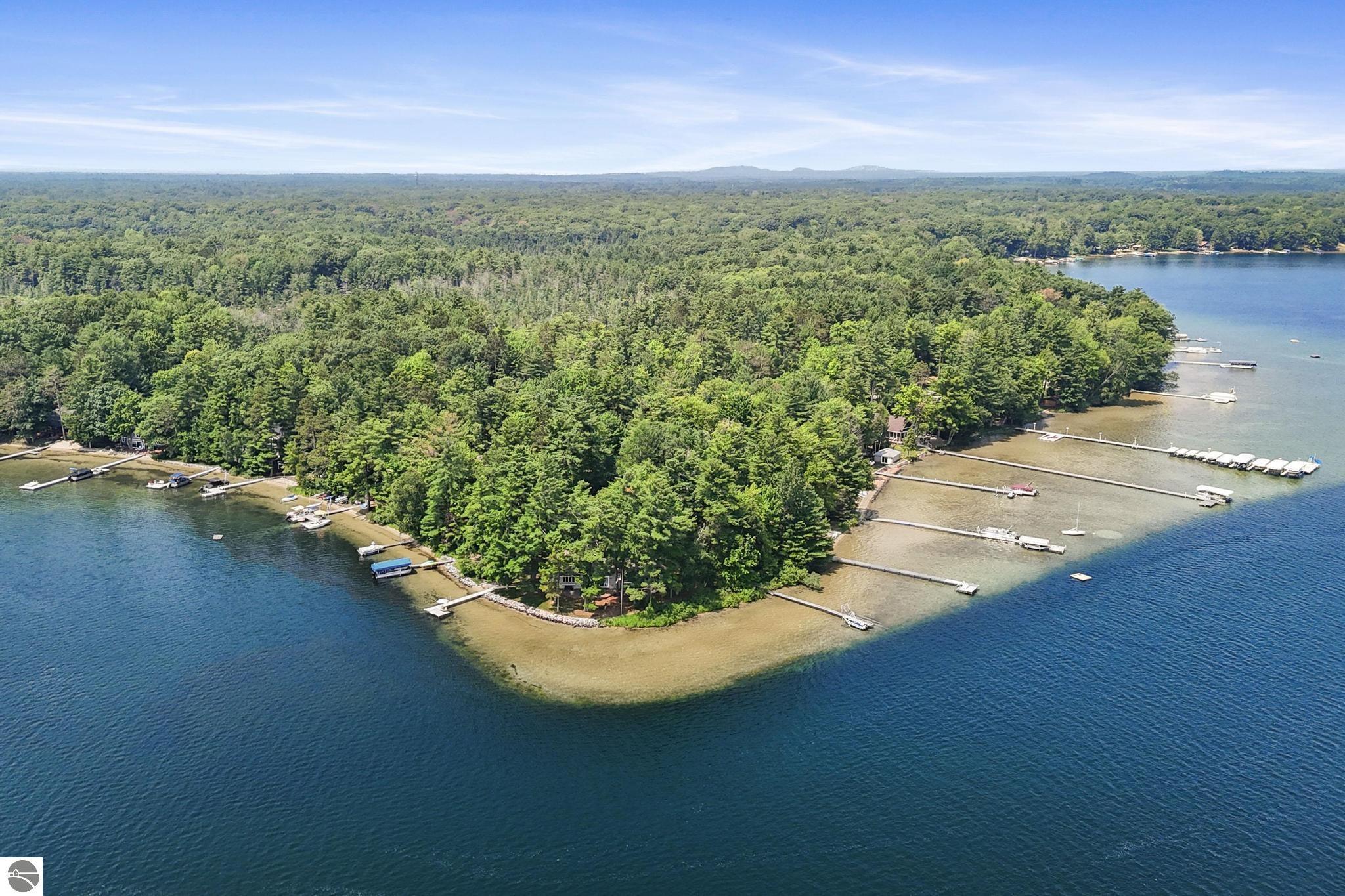 Welcome to The Point on Long Lake — one of the most rare and extraordinary waterfront properties in Northern Michigan. This one-of-a-kind property sits on a private point surrounded by water on three sides, offering an incredible 316 feet of private frontage, sandy shallows, and breathtaking panoramic lake views in every direction. From the moment you arrive, it’s clear this property is truly spe…